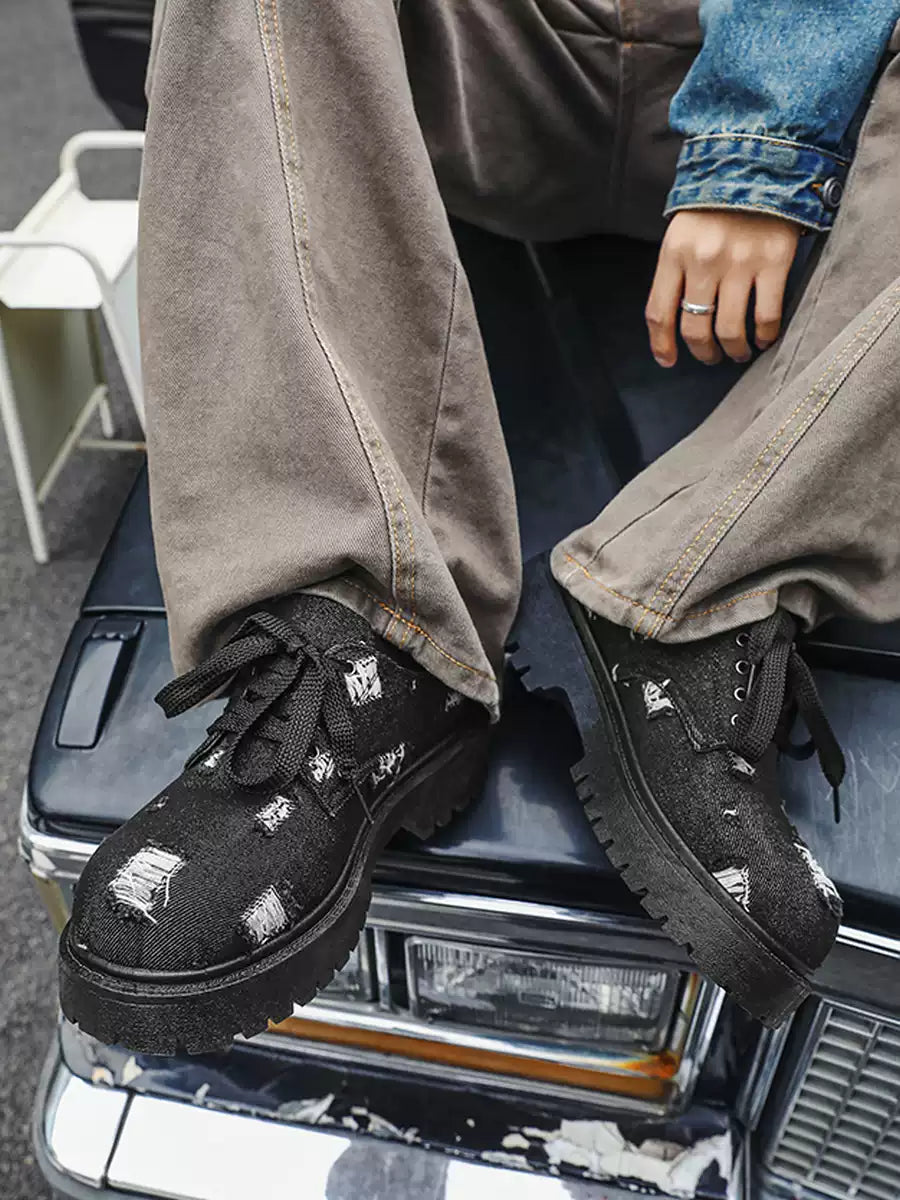 2025 Spring niche design leather shoes for men and women retro dark spiked thick-sole